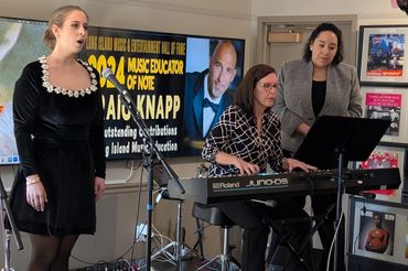 Current and former students honored Knapp with special musical performances. Rocky Point Students Olivia Carley and Serena Carley, MYO Treble Choir students Nate Drinkwater and Andrew Nagle. Former student now Deer Park Music Teacher Grace Donofrio sang Georges Bizet’s Carmen accompanied by pianist Sara Ruggiero.